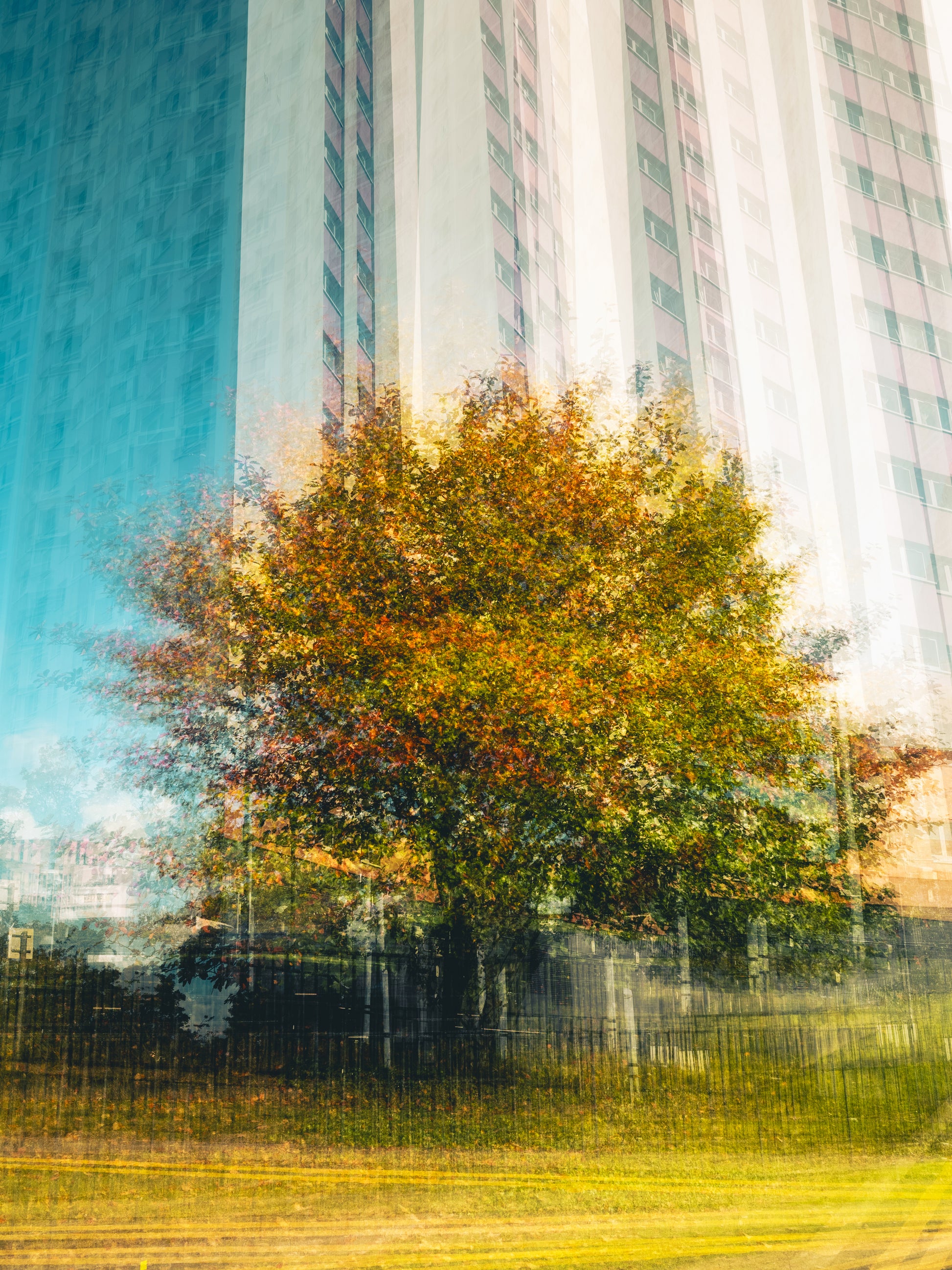 This image captures a tree just outside the high-rise flats near Glasgow College, contrasting nature with the towering city architecture. I used multiple exposures in a looping sequence to carefully include the surrounding buildings, highlighting both the tree and the urban environment. The composition invites reflection on the quiet moments that exist between the walls of the city.